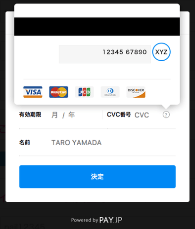 クレジットカード情報 Cvc