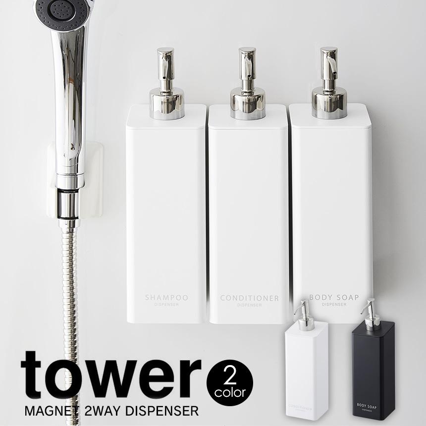 ヒルナンデス シャンプーボトル おしゃれ そのまま 詰替え ホルダー ディスペンサー マグネット タワー 山崎実業 500ml 袋ごと コンディショナー ボディーソープ 78141 アイデア