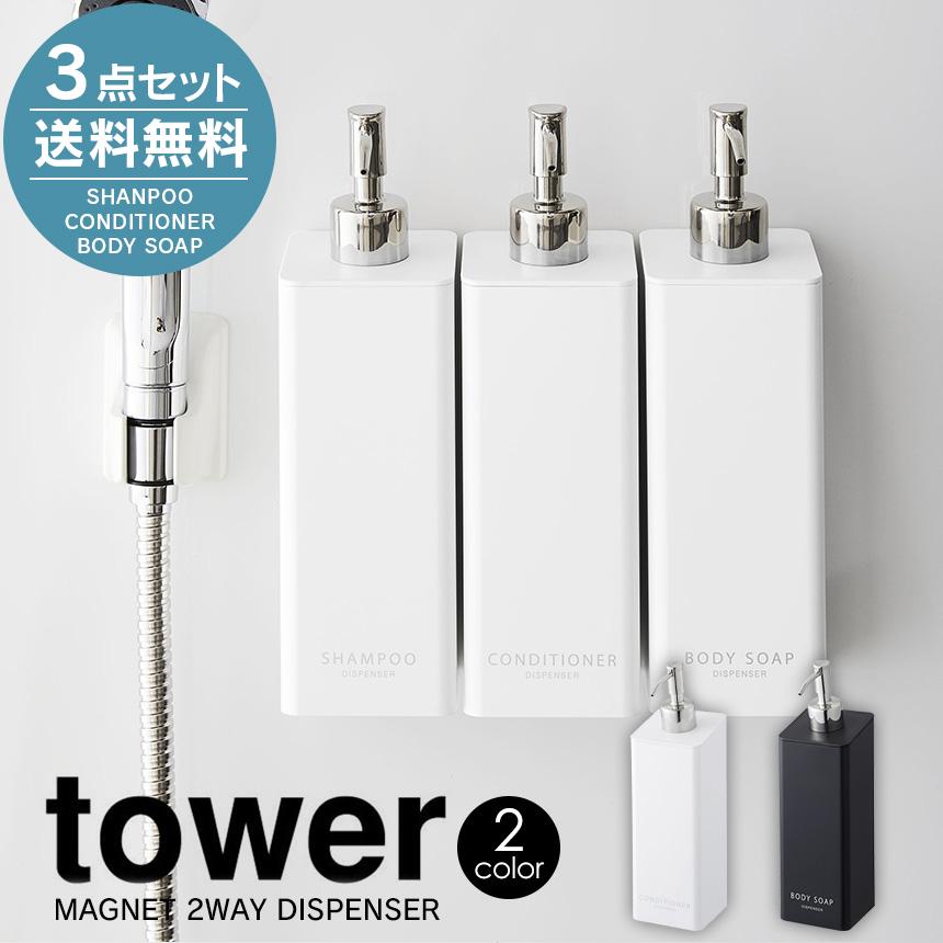 ヒルナンデス シャンプーボトル おしゃれ そのまま 詰替え ホルダー ディスペンサー 3本セット マグネット タワー 新居祝い 山崎実業 500ml コンディショナー 78141set アイデア
