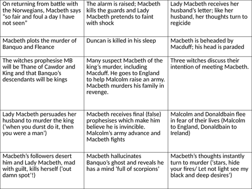 Macbeth Plot Sort And Answers Proof Read Teaching Resources